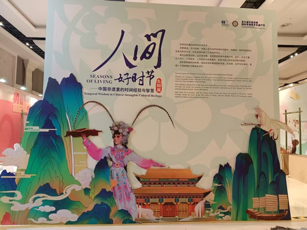 現場,開設“人間好時節”主題展,該展區以“時間”為線索,梳理全國各地各民族與之相關的非遺資源,展現中國廣袤大地上的生產生活樣本,深刻挖掘并展示中國非遺如何精妙地映射出中國人的時間智慧及生活。云南的竹樓營造技藝、傳統手工造紙技藝以消暑為主題,打造“戶盈羅綺”的生動場景;彝族立秋節(圖文參展)、平川朱苦拉咖啡制作技藝和德昂族酸茶制作技藝參與中秋主題展示,共同打造中秋家宴與新式養生局。