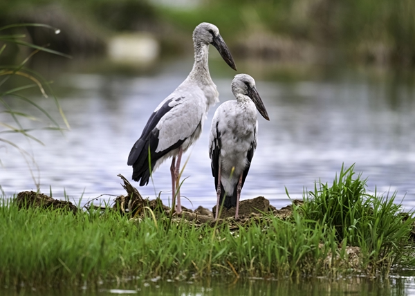 李晧嵐介紹,鉗嘴鸛以螺類為主食,能有效抑制福壽螺種群擴張,減輕其對生態和農業的危害,間接保護本土水生植物和螺類,維護濕地生物多樣性,為其他物種提供更穩定的棲息環境。(汪發銘/文、劉杰/圖、云南省文山州丘北縣融媒體中心供稿)