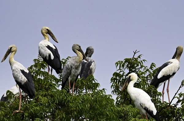 據悉,鉗嘴鸛原本主要分布于南亞和東南亞地區,近年來普者黑濕地憑借其優越的生態環境和豐富的食物鏈,成為鉗嘴鸛重要的遷徙地之一。