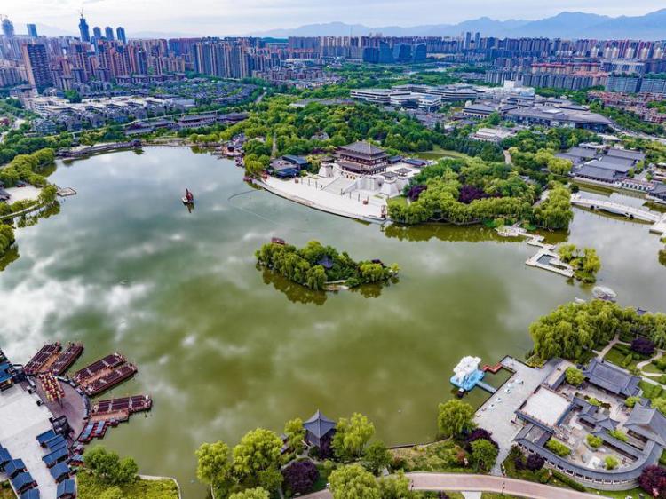 6月4日,西安大唐芙蓉園上空云卷云舒,與古典園林景致交織出一幅動人心魄的“天空之城”畫卷,園內碧波蕩漾的湖泊,宛如一面明鏡,倒映著天空中變幻的云影,令人心曠神怡,仿佛置身于夢幻般的仙境。