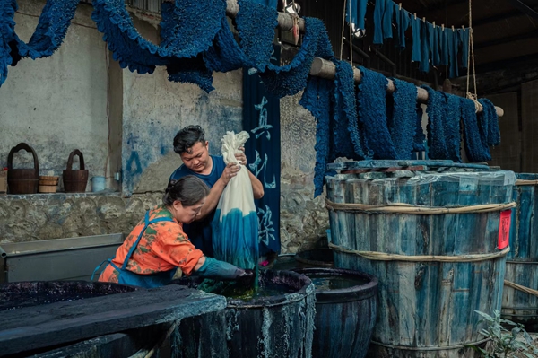 暮色中,住客穿著自己染的扎染襯衫走在村巷,石板路上投下藍白相間的影子。這片浸潤著千年技藝的土地,正以藍白為經緯,編織著傳統與現代共生的旅居夢想。(劉永梅)
