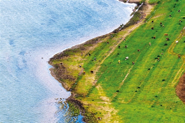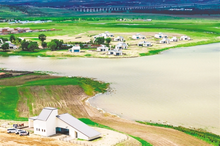濕地草灘、天然牧場、萬畝林地……烏蘭察布市興和縣澇利海以2360畝橢圓形湖泊為核心,串聯起風光優美的生態矩陣,吸引不少市民游客前來游玩,成為京津冀地區及周邊省市區游客“反向旅游”的新晉網紅打卡地。(記者 王曉博 攝)