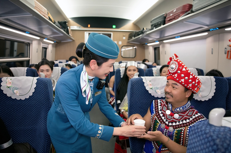 暑運期間,國鐵昆明局持續提升美好旅行體驗,通過增加安檢口、檢票口、電梯口人員配備等措施,提升車站通過能力;織密信息溝通網絡,持續深化對重點旅客提供站間協同、跨段聯處、跨局聯動、站車聯合服務;在列車上升級打造“一路茶香、和美通途”“云嶺天路?暢游無憂”等10項特色舉措,通過創新升級,提供防燙提示貼、暖心加熱桶和熱藏盒飯,新增蟲草花燉雞、棠梨花炒臘肉等37個特色菜品等,滿足旅客多樣化選擇;深化打造4趟民族團結進步示范列車,開展民族文化進車廂、文藝展演等活動,將云南民族特色優勢轉化為服務旅客的互動體驗,締造快樂之旅。