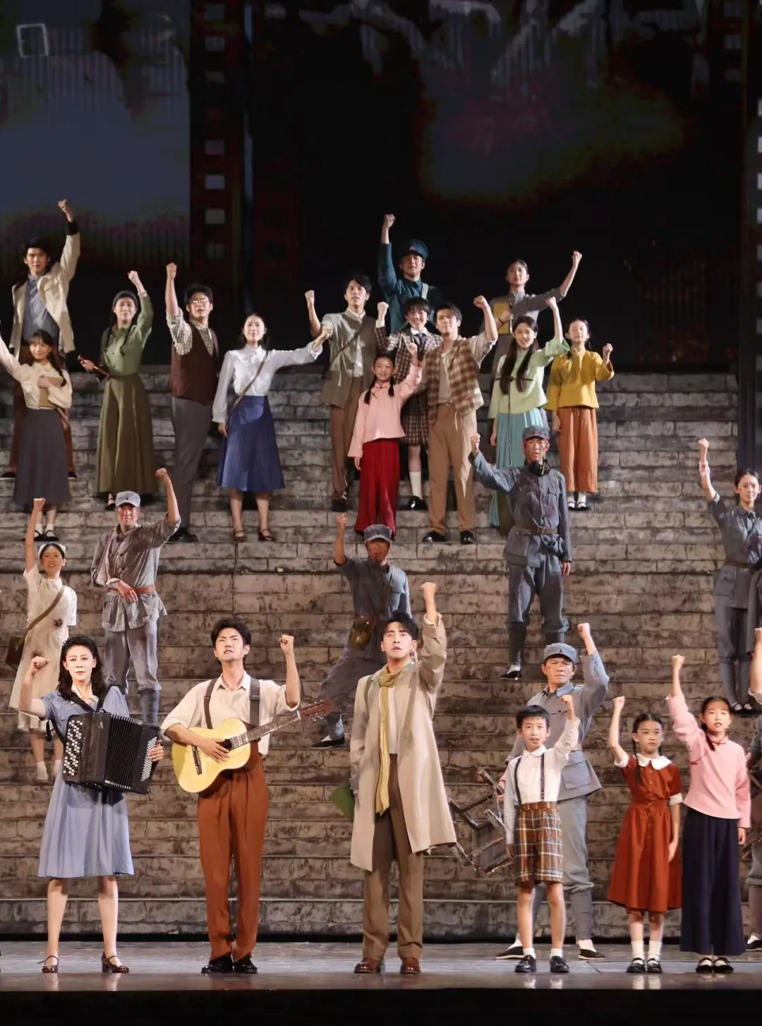 舞臺上,他扮演的“青年畫家”,雖無人物原型,卻像一塊鮮活的“歷史拼圖”,拼湊出當年無數在戰火中堅守的文藝工作者群像?!澳菚r的文藝戰士,從不是孤軍奮戰:可能是在破廟里就著油燈畫抗戰宣傳畫的學生,可能是在戰壕里用炭條記錄戰士沖鋒身影的文藝兵,他們以紙筆為‘武器’,以作品為‘火把’,哪怕餓著肚子,也要為同胞燃亮希望?!?/p>