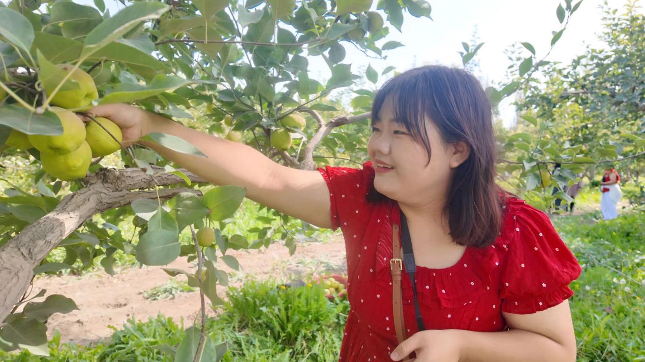 游客正在采摘香梨。周靜靜攝
