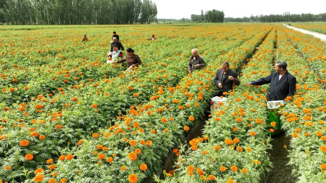 莎車縣英吾斯塘鄉萬壽菊迎來豐收。