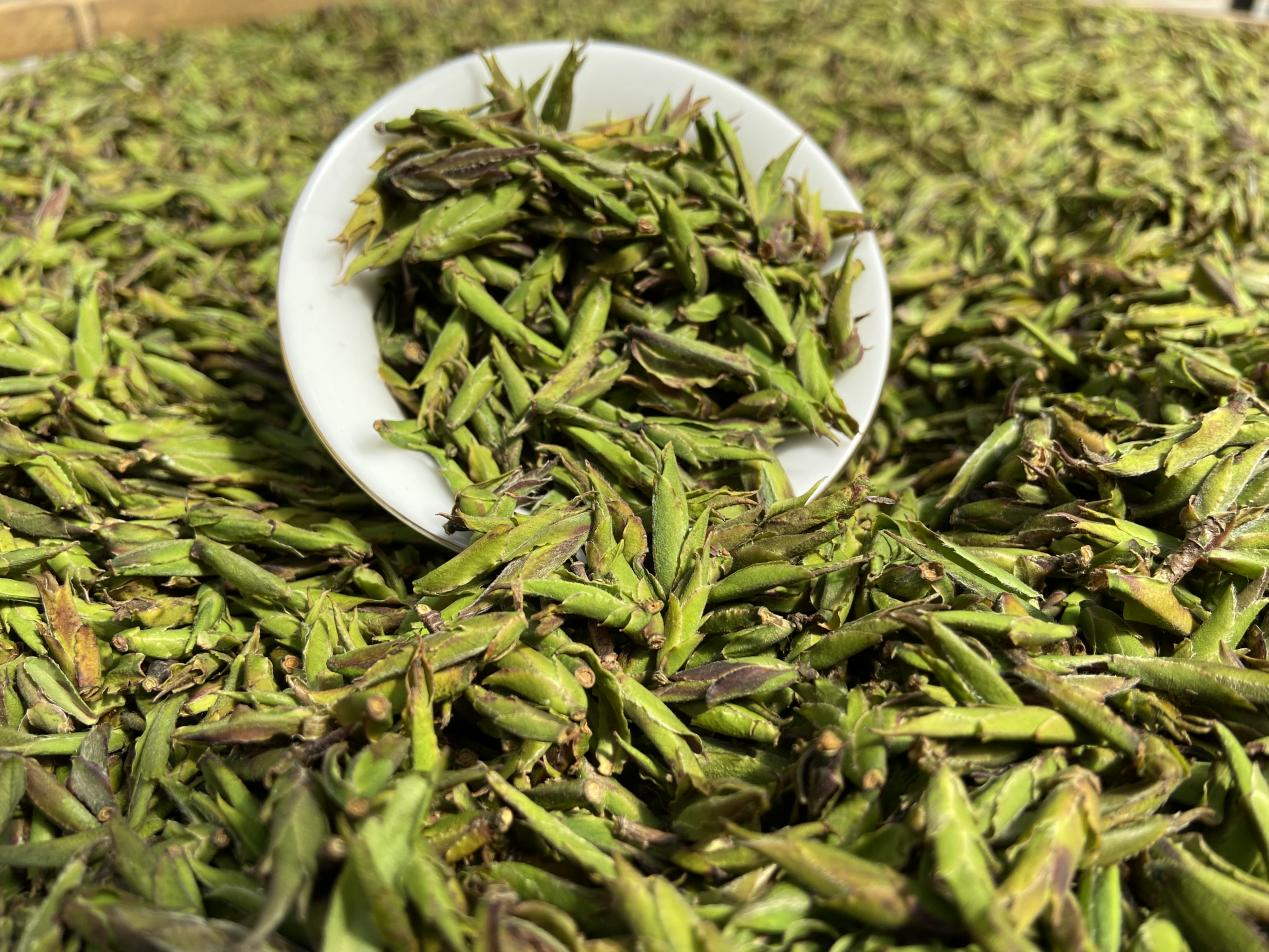 - 走進當地的茶園,早起的茶農早已在茶園中忙碌,頭戴草帽、肩掛竹籃,雙手在茶尖上飛舞,一彎一提間,籃子里就裝了好些新鮮的嫩綠春茶。飄蕩在茶園上空歡快悠揚的歌聲里滿滿都是喜悅的表達,又是一個茶葉增收年,茶農汗津津的臉上掛滿了笑容。
